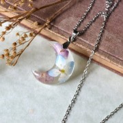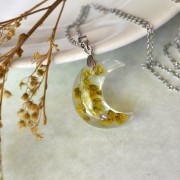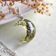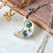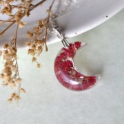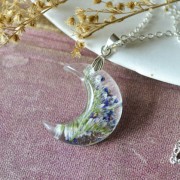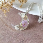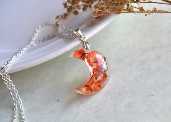 Артистката Кристина Хатчинсон прави комбинација од космосот и нашата планета така што создава креативни ѓердани во форма на цветни полумесечини. Овие приврзоци се исполнети со вистински цвеќиња и потоа се закачени на сребрени синџирчиња. Малите цвеќиња ни нудат интимен поглед кон убавината на природата, која овој процес ја овековечил. Погледнете колку прекрасно изгледаат тие.