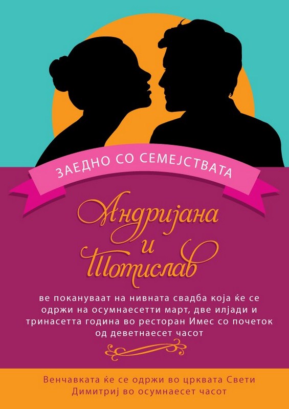 Свадбената покана е составен дел од целокупната слика за една свадба, па доколку сакате сѐ да биде под конец, треба да се погрижите таа да биде уникатна и интересна. Преку поканите вие испраќате порака до вашите драги гости за каква венчавка станува збор, дали за модерна, гламурозна, традиционална или фамилијарна.