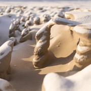 Благодарение на уникатните временски услови, фотографот Џошуа Новицки налетал на неверојатна глетка додека шетал по брегот на езерото Мичиген. На плажата имало голем број бизарни кули од песок кои биле високи и до 30 сантиметри. Овие кули кои изгледале како вонземски веројатно биле создадени од уникатната комбинација на интензивен студ и ветар кој доаѓал од огромното езеро. Ветрот еродирал во замрзнатиот песок, притоа оставајќи позади себе чудни формации.