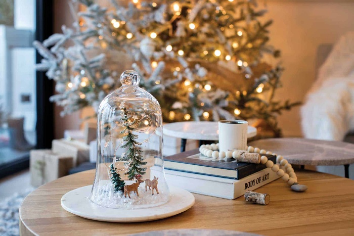 Постојат многу начини да се направи празнична атмосфера ко од бајка во вашиот дом. Бирање на специфична тема може да биде ваш водич низ тоа како да одберете празнични украси. На пример, ако вашите деца го сакаат филмот „Frozen“, можете да додадете украси со Елса и Олаф. Која и тема да ја одберете, придржувајте се кон боите бела, сива, златна и сина. Па, фокусирајте се на златни, сиви и бели украси кога ќе ја украсите вашата Новогодишна елка. Исто така, ограничете ја вашата палета на бела, сива и бледо-сина боја, кога ќе ја украсите вашата маса.