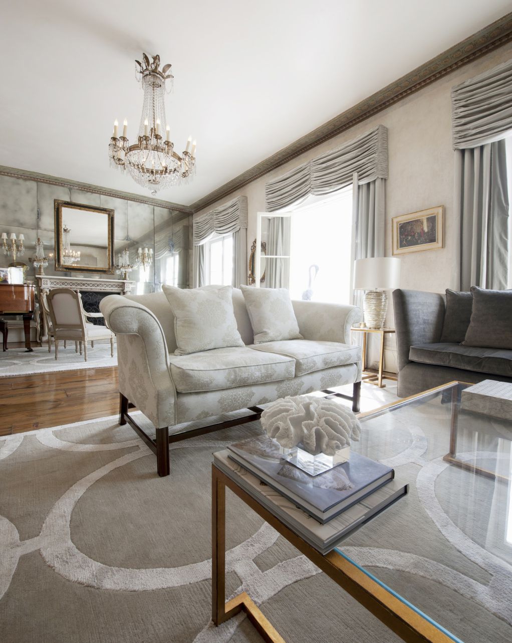 Декориран со најнежните пастелни тонови, овој стан во Лондон е олицетворение на препознатливиот британски луксуз во дизајнот на ентериерот. Антички мебел, кристални лустери, неодолив стил на гардеробер, француски прозорци, елегантни завеси – сето ова во овој луксузен стан создава гламурозна атмосфера со многу вкус и стил. Користејќи нежни бои и детали, целиот простор добива доза романса. Идеално место за почеток на денот и пиење кафе, како и за релаксација навечер со книга или со саканата личност.