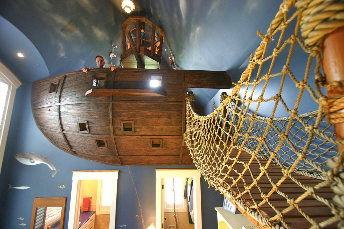 Највпечатливиот елемент во собата е токму големиот пиратски брод кој се протега низ едната страна на собата. До дрвената палуба сместена високо на ѕидот, можно е да се стигне единствено преку малиот мост направен од дрво и јаже.