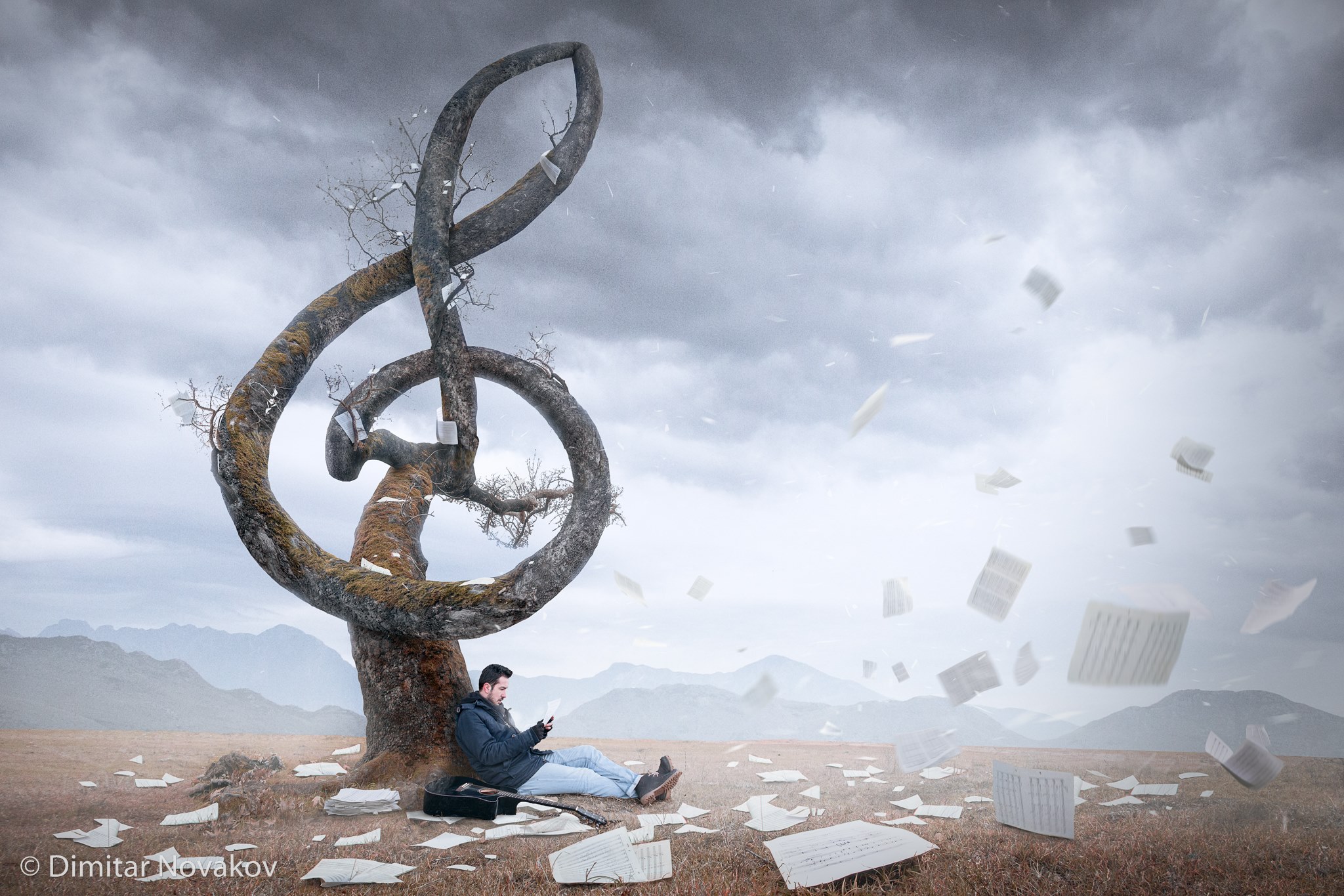 „За првото дело ми беа потребни 3 до 4 дена за целосна изработка, бидејќи сите елементи ми беа достапни, но за најновото дело, ‘Музичка есен’, односно сликата погоре, чекав 6 месеци за да се создадат потребните услови за фотографирање. Идејата ја имав, елементите ми беа достапни, но за таа да изгледа онака како што ја замислив мораше да биде зима“, вели Димитар.