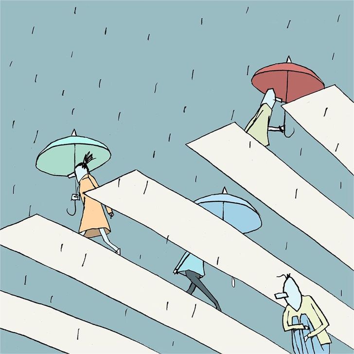 Сите ние сме различни и нашите животи не се исти, но има чувства низ кои секој минува барем еднаш во животот. Уметникот Јувал Робичек од Израел создава илустрации преку кои прикажува животни ситуации без да користи зборови. На неговите илустрации можете да видите заљубени, а дури и тажни луѓе. Исто како и во животот.