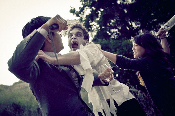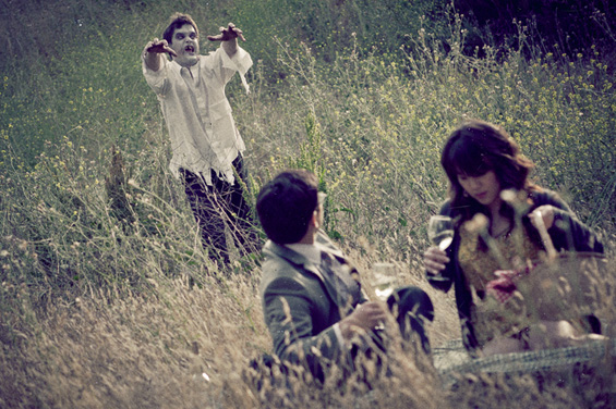 Juliana Sunmi Park и Benjamin Jinsuk Lee ја однеле фотосесијата од нивната веридба, на едно сосема поинакво ниво. Наместо да се трудат да бидат слатки и романтични, тие решиле да бидат креативни, вклучувајќи во фотографиите напад врз нив од страна на едно морничаво зомби. 🙂