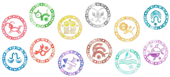 На замислените Риби кои обожаваат да фантазираат им одговараат сите бои, но најмногу нијансите кои потсетуваат на море, како и студените бои. Од топлите бои им одговараат светло црвената и светло портокаловата. Рибите треба постојано да ги користат овие бои за истакнување на нивните најдобри особини.
