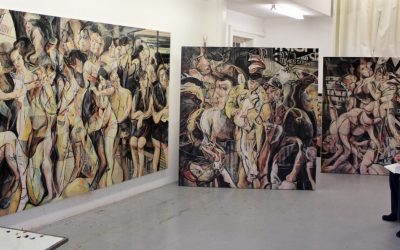 Маслени слики со повеќе слоеви го визуализираат движењето во зафатените градови