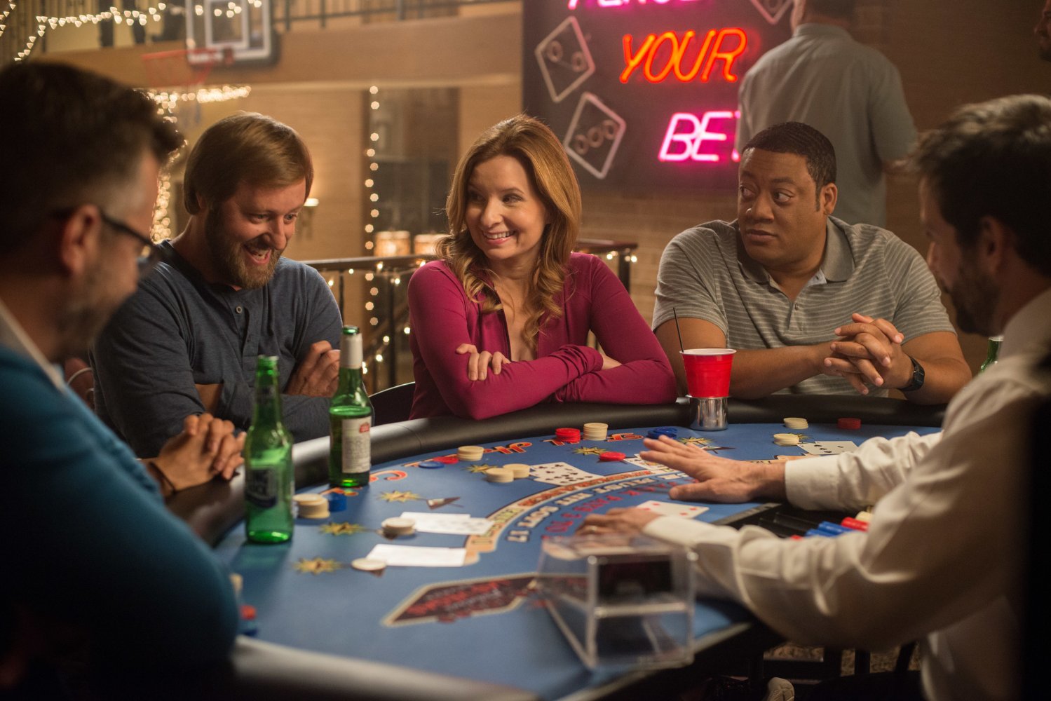 Што се однесува до „Куќа на среќата“, тој не се разликува воопшто од неговите претходници. Преполн со големи имиња, како Ејми Полер и Вил Фарел, тие ја задоволуваат потребата за талент, но тоа е сè. Приказната се врти околу брачен пар што отвораат нелегално казино во домот на нивен пријател за да заработат пари да можат да ја испратат ќерка си на факултет. Целта ги оправдува средствата, зарем не? Нивниот пријател, толкуван од страна на Џејсон Манцукас, ја прифаќа нивната идеја и ја развива во нешто многу поголемо. Тој ја има улогата на „лудиот“ карактер што е својствен за филмовите од овој жанр, но зачудувачки, иако неговите дела се непредвидливи, тој е можеби и „најнормалниот“ во целата приказна.