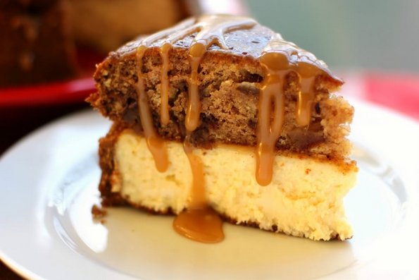 Направете ја основата на чизкејкот, а при мешањето на другата смеса додадете и кафе. На крајот посипете со течен карамел. Резултатот ќе биде одличен.