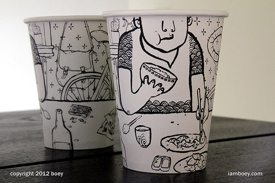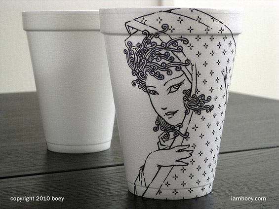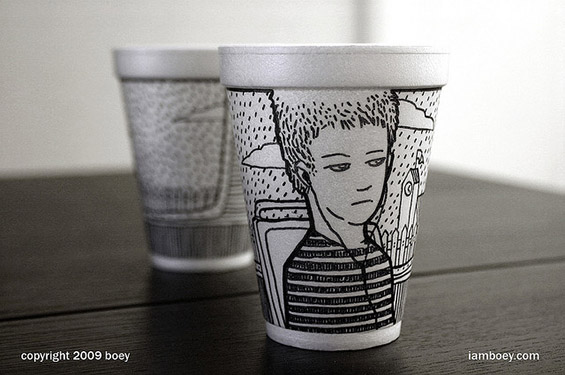 Неговото скромно претставување на Фликр, гласи вака: „Моето име е Boey и цртам врз чаши“. Но, тоа е далеку од вистинската слика за него, бидејќи тој е истовремено илустратор, блогер, аниматор… Низ годините го развил и овој уникатен стил на цртање, кој очигледно му носи добри приходи. Чашите чинат од неколку стотици до неколку илјади долари, во зависност од комплексноста на цртежот и времетраењето на изработката. Можат да се купат на Etsy.