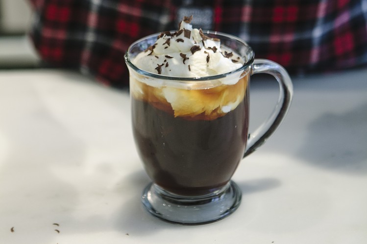 Ставете ги сите состојки во шејкер и добро измешајте. По желба додадете и мраз. Сервирајте со шлаг наросен со рендано чоколадо.