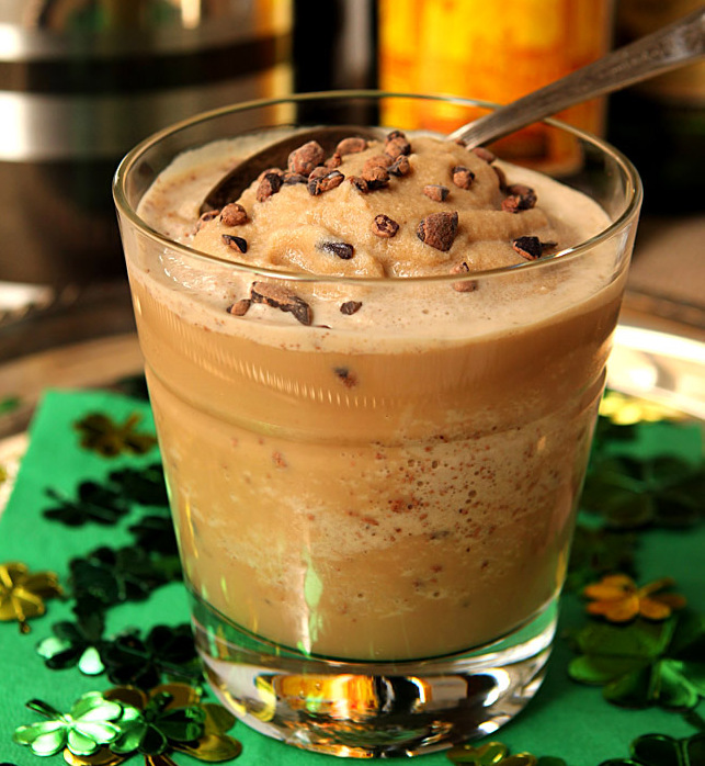 Ставете ги сите состојки (освен чоколадото) во блендер и мешајте сè додека не добиете мазна смеса, а потоа сипете во оладени чаши и декорирајте со рендано чоколадо.