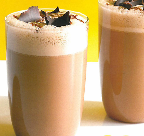 Сите состојки ставете ги во блендер и измешајте ги додека не добиете убава хомогена смеса. Кафето сипете го во висока стаклена чаша и декорирајте по желба.