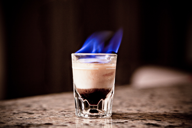 Запалете го румот и послужете го со мала цевка. Испијте го овој C-52 коктел од дното на чашката додека тој сè уште гори.