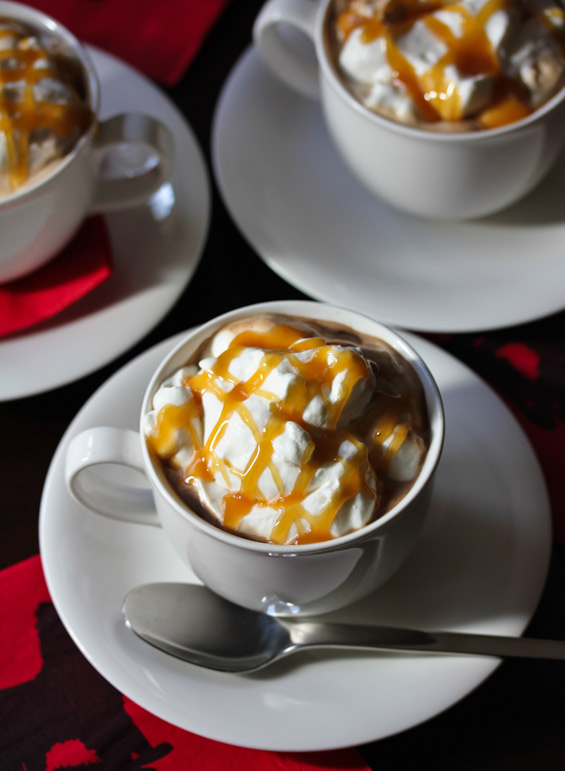 Начин на подготовка: Топлото кафе и сирупите од карамела и чоколадо помешајте ги и ставете ги на загреана рингла. Убаво мешајте ги додека состојките не се соединат. Згуснатото кафе сипете го во шолја, одозгора додадете го млекото, а декорирајте со шлаг и карамела.