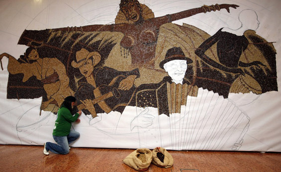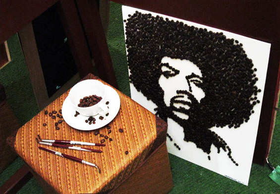 Досега беа објавени интересни дизајни направени на површината од кафето, уметнички дела нацртани со еспресо, па дури и дела насликани со дно од шолја извалкана со кафе. Сепак, овој вид уметност опфаќа и интересни креации направени од зрна кафе.