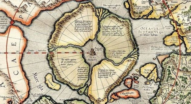 „Помеѓу 4-те држави има голем вир во кој се празнат морињата кои го делат северот. И оваа вода се спушта во Земјата како некој да ја истура. Широк е 4 степени од секоја страна на Полот, и веднаш под него има карпа сред морето. Нејзината површина е речиси 33 француски милји и е направена од магнетен камен.“