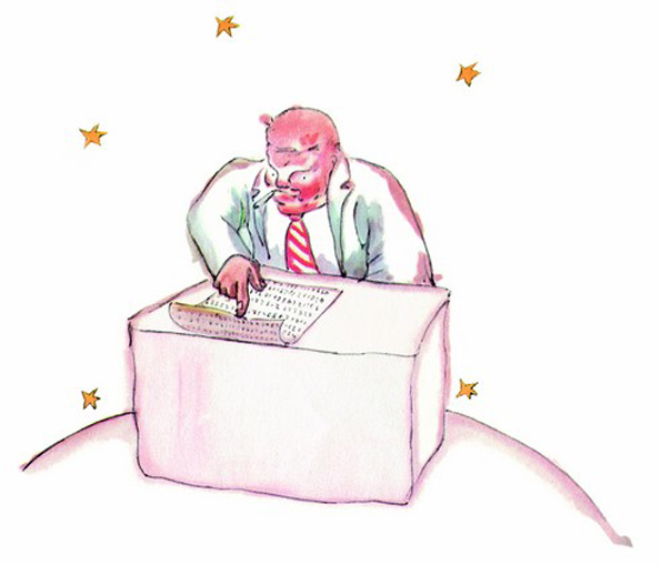 На неговото патување на различни планети, Малиот принц открива дека сретнал еден многу сериозен бизнисмен. Овој човек непрестајно ги броел сите ѕвезди на галаксијата и иако велел дека е среќен затоа што ги поседувал сите, неговиот живот е осамен и монотон бидејќи не му се случува ништо друго. Тој не е способен ни да ја цени убавината на ѕвездите.