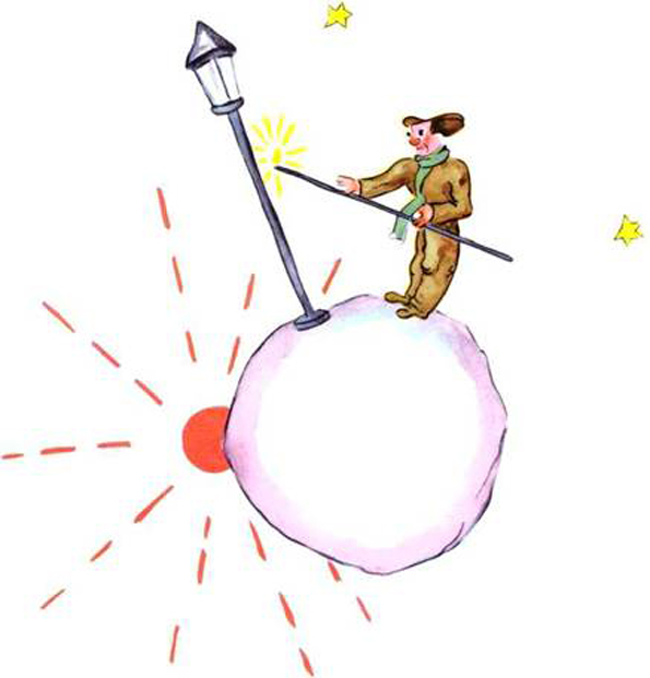 „Потоа – планетата го поминува својот круг за една минута, и јас немам ниту една секунда за да здивнам. На секоја минута треба да ја палам и гасам ламбата!“