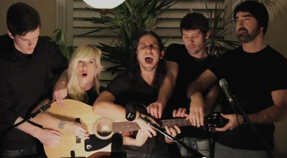 „Somebody That I Used to Know“ отсвирена од 5 луѓе на 1 гитара