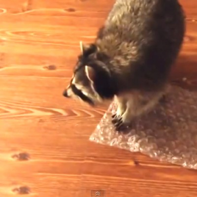 Ракун кој се забавува пукајќи ќеса со меурчиња