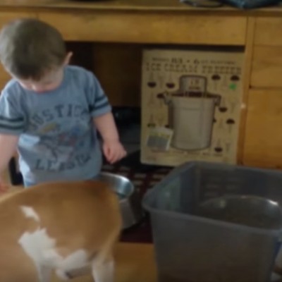 Мало детенце се обидува да го нахрани своето куче, но наместо тоа паѓа во неговиот сад со вода