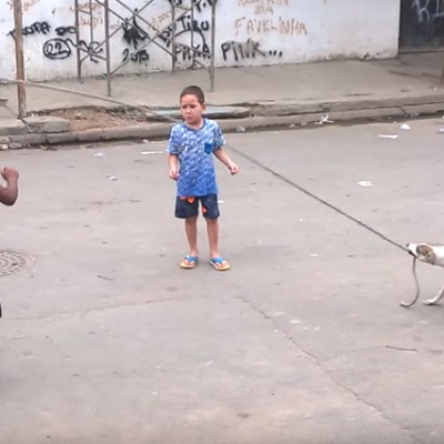 Куче им помага на мали човечиња да играат со јаже за скокање
