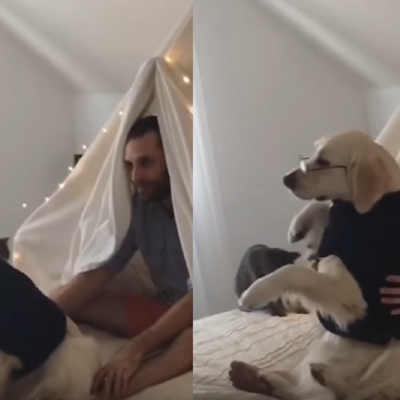 Има целосна доверба: Куче слободно паѓа во рацете на својот сопственик