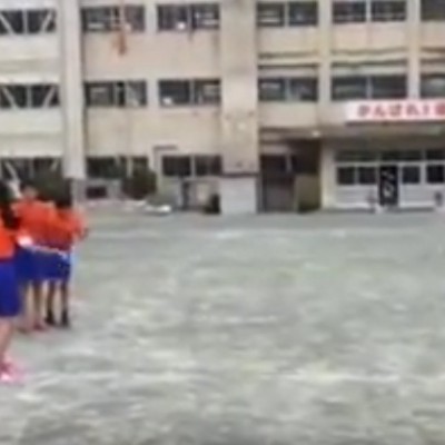 Група училишни деца со беспрекорна рутина за скокање на јаже