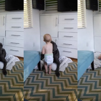 Мало бебе го учи ова огромно куче кој е главен во домот