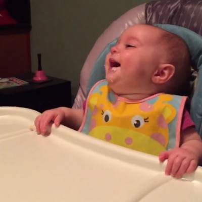 Преслатко бебенце не може да престане да му се смее на својот татко кој јаде зеленчук