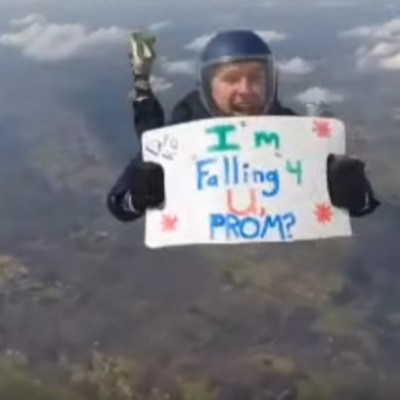 Средношколец скока од авион за да ја побара својата партнерка за матура!