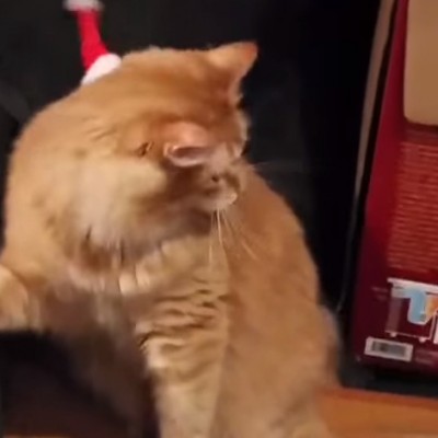 Слатко маче е целосно збунето од новогодишната капа која ја носи