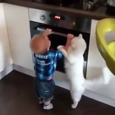 Ова кученце се обидува да си го добие назад својот кревет. Мачката ужива гледајќи го како се мачи :)