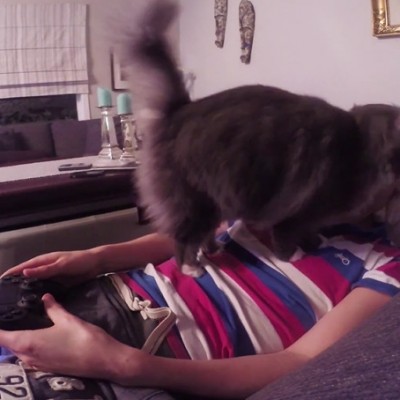 Неодоливо досадна мачка не му дозволува на својот сопственик да игра видео игри