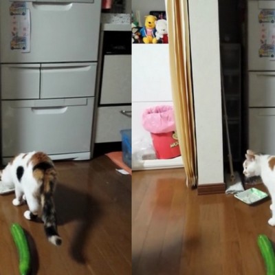 Неочекувана краставица ја исплашува оваа „храбра“ мачка