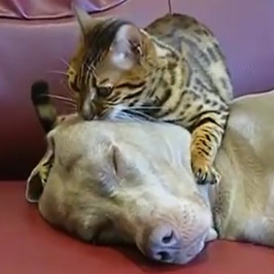 Мачка со хипнотерапија се обидува да влијае врз животот на ова куче