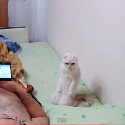 Мачка застанува исправена на нозе веднаш штом ја слушне руската химна