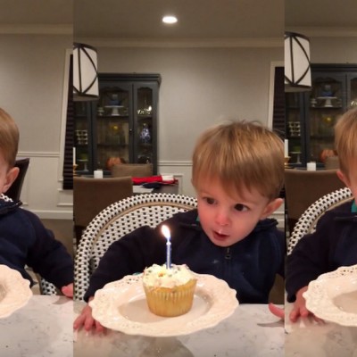Слатко 2-годишно детенце не може да ја изгасне роденденската свеќа