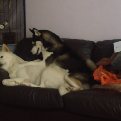 Разиграно и енергично куче не ја остава својата сестра да спие на раат