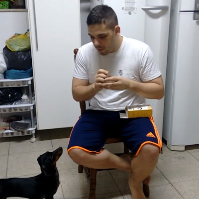 Генијален човек користи обратна психологија за да го натера своето куче да испие апче
