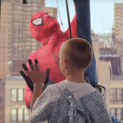 Човек облечен како Спајдермен покажува дека секојдневно треба да бидете херои