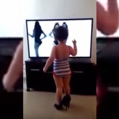 Мало девојче лудо танцува во штикли од нејзината мајка на песната „Single Ladies“ од Бијонсе