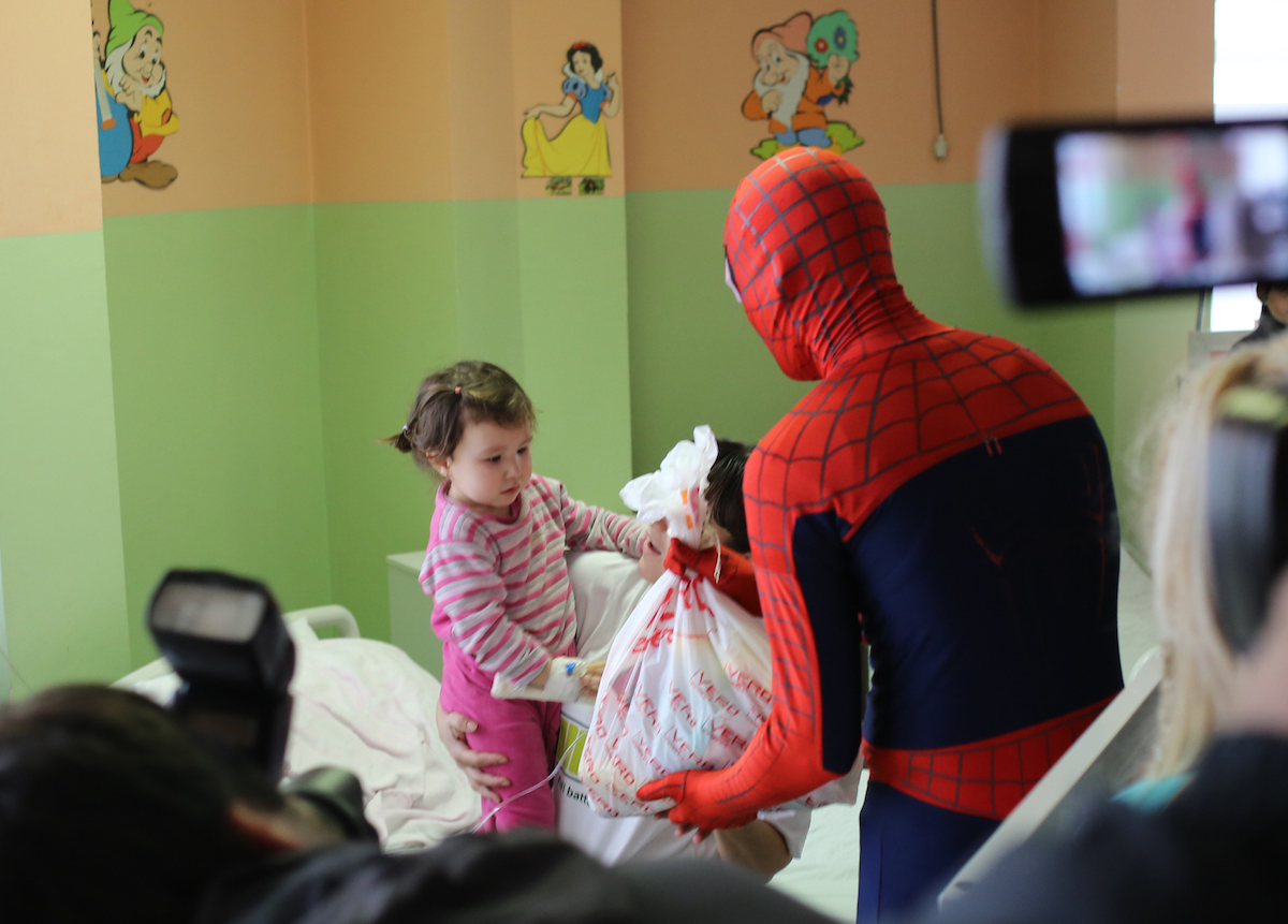 Бетмен, Спајдермен, Капетан Америка, Маша и Медо денеска ги изненадија дечињата кои престојуваат на Клиниката за детски болести во Скопје за да им го честитаат Коледе. Костимираните суперхерои поддржани од двата детски омилени ликови од популарниот руски цртан филм влегуваа во собите на болните дечиња пеејќи им коледарски песни и според коледарската традиција им поделија пакетчиња со овошје, слатки и играчки.