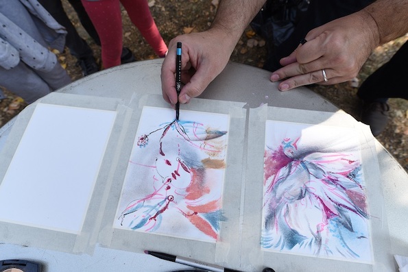Свој дел зема и познатиот академски сликар Тони Шулајковски кој ни покажа дека шминката и воопшто козметиката може да има своја поинаква употребна вредност. Па така со кармините, руменилата и лаковите на Авон создаде прекрасни уметнички дела кои ќе бидат донирани во Дневниот центар за поддршка и советување на пациентите заболени од рак на дојка.