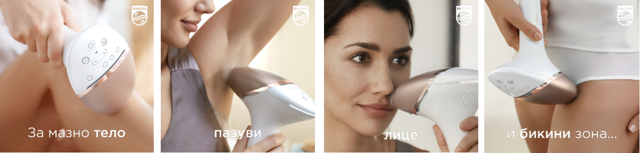 - Philips Lumea e целосно безбеден и безболен, што значи дека можете слободно и без грижи да ги третирате сите делови од телото, дури и најделикатните, како на пример бикини-зоната – значи ќе бидете спремни за на плажа