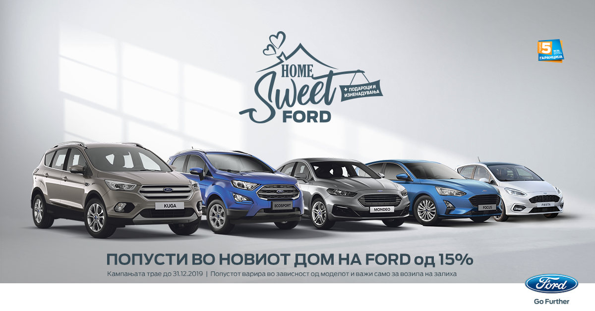 Истовремено, по повод на отворањето на новиот објект и 25 годишното присуство на пазарот, компанијата ја најави и својата најнова кампања Home Sweet Ford, која овозможува големи попусти и подароци за сите потрошувачи, а трае сѐ до крајот на 2019 година.