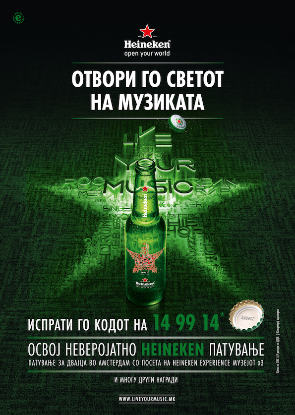 Во понеделник, на 23 јули започнува наградната игра на Heineken под име „Отвори го светот на музиката со Heineken“.