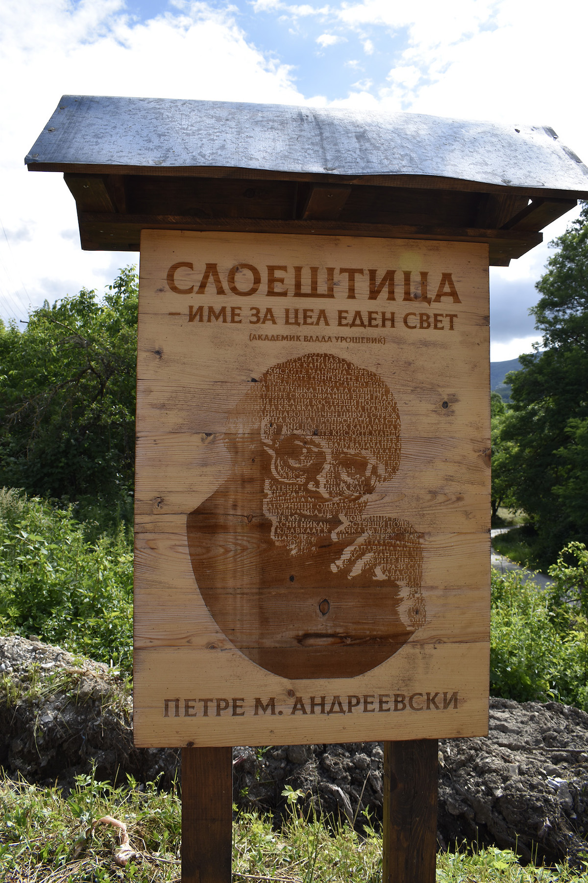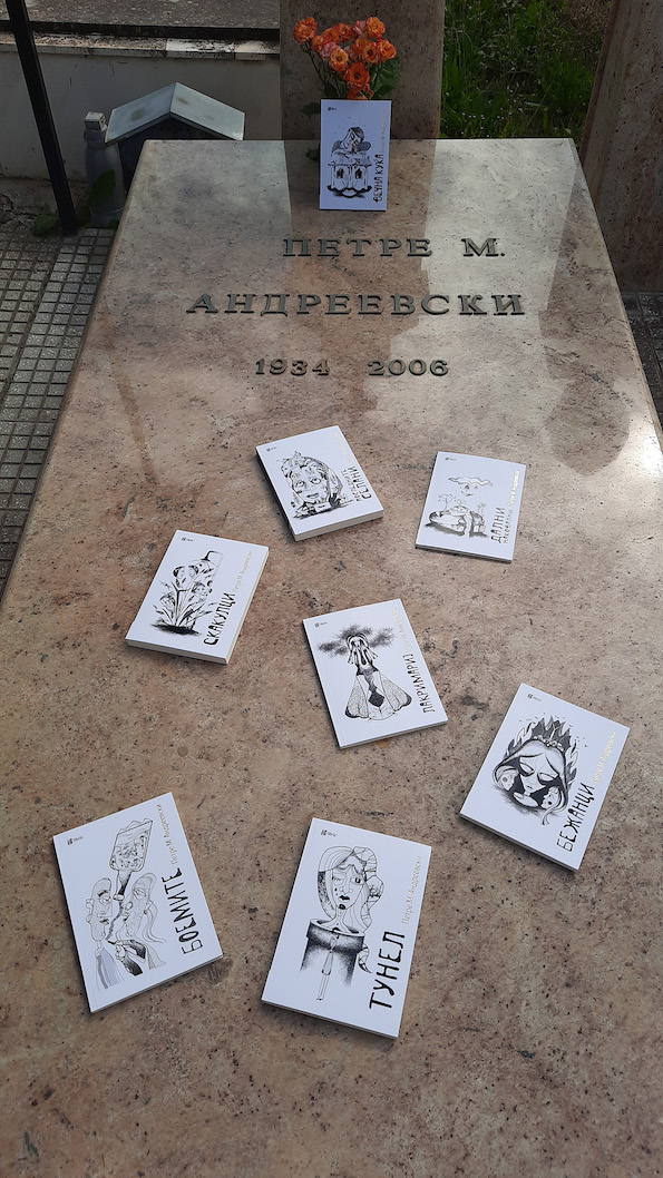 „Последната станица на нашата посета беше неговата вечна куќа. Неговиот син и уметник, Сергеј Андреевски, ни откри дека Петре го споделува ова почивалиште со Велика, неговата хероина од романот Пиреј. Авторот и неговиот лик соединети – сознание што предизвикува морници. Покрај гробот исправена стои статуа со неговиот лик. Ја изработил негов пријател-скулптор уште додека бил жив. Кога ја видел, се доживеал како да се огледува во огледало. Наместо цвеќе, како роденденски подарок му ги донесовме најновите изданија на неговите дела, реанимирани со цртежите од неговата внука, уметницата Воскресија Андреевска и сработени со посебна почит како што зограф создава нечиј свет лик. И токму таму, се заветивме дека ќе го чуваме од заборав, ликот и делото на неговото величие – Петре М. Андреевски“ – велат од тимот на „Арс Ламина“, кои ја посетија Слоештица за роденденот на книжевниот великан.