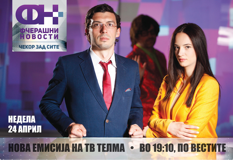 Под слоганот „Чекор зад сите“, во недела во 19:15 часот на телевизија „Телма“, веднаш по вестите, ќе се емитува првата епизода на „Фчерашни новости“. Се работи за нова хумористично-сатирична емисија, на која работи креативен тим предводен од Бранко Огњановски, најпознат како Миле Паника од „К-15“.